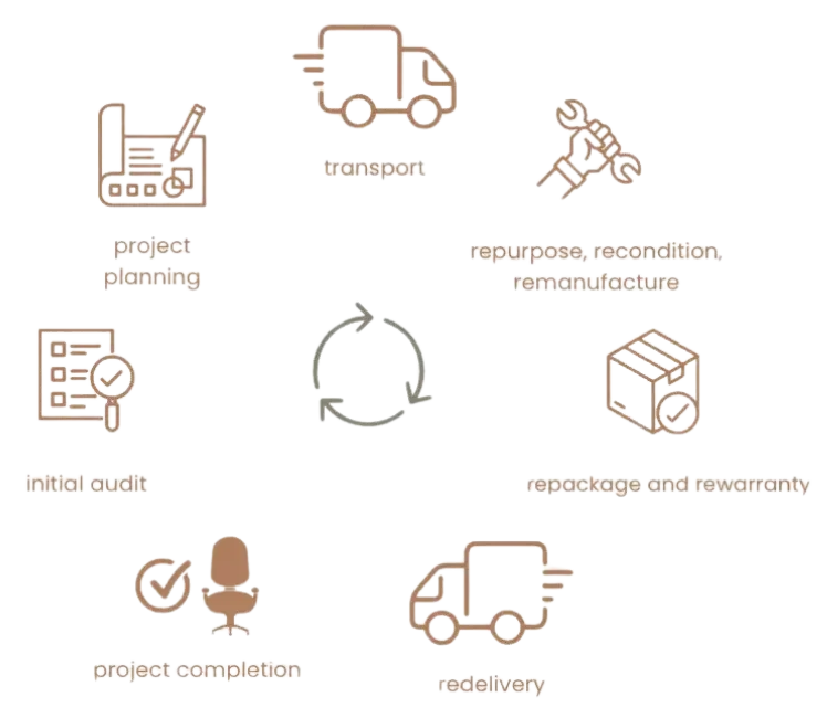 Our focus is on promoting responsible office furniture management through reuse, repair, and redesign.